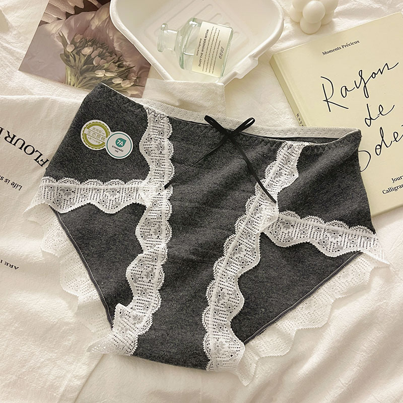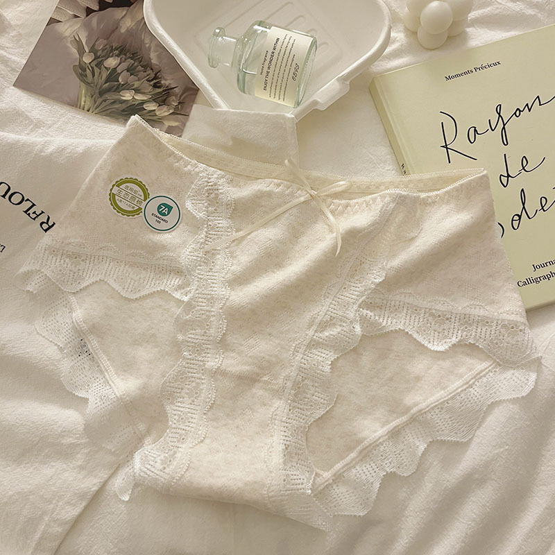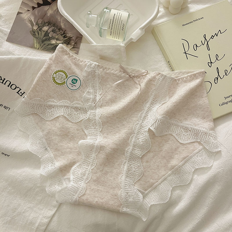 7A Antibacterial Women's Cotton Crotch A-Class Baby Cotton Mid-Waist Seamless Lace Edge Sexy Girls' Triangle Pants